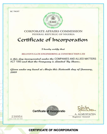 Certificate of incorporation
