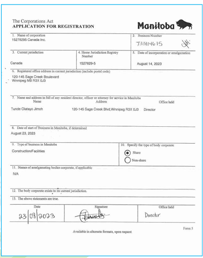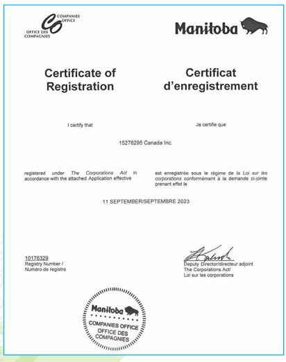 Certificate of incorporation Canada